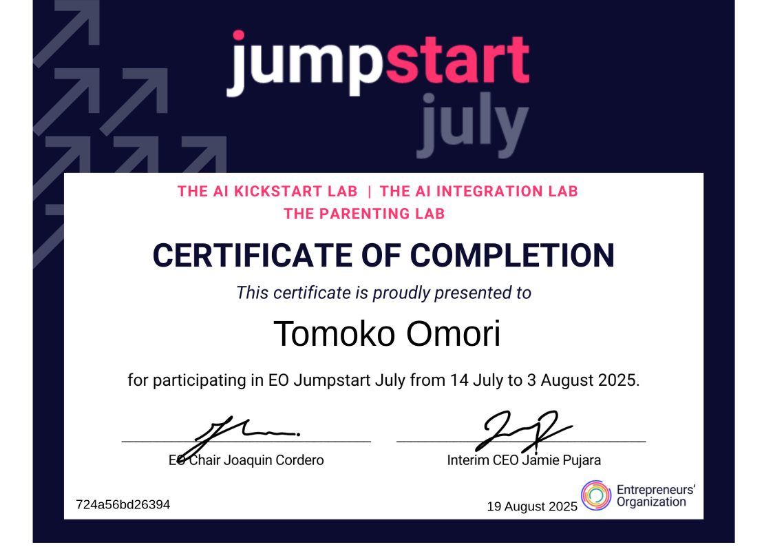By successfully completing the program, participants demonstrated their dedication to growth, adaptability, and applied learning. This certificate recognizes their achievement and affirms the new competencies gained—ranging from AI fluency and business integration strategies to practical, science-based parenting approaches—equipping them to lead with greater confidence, capability, and connection.